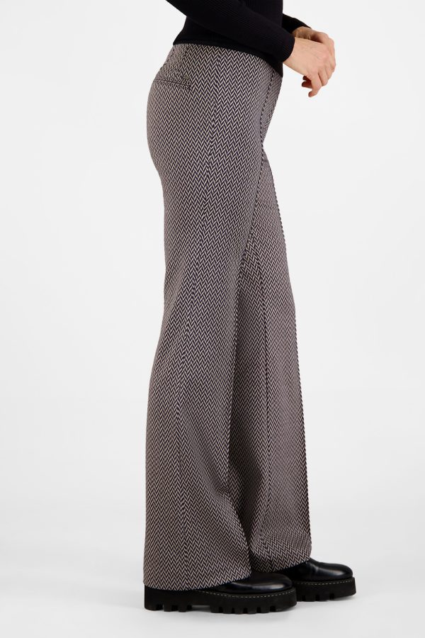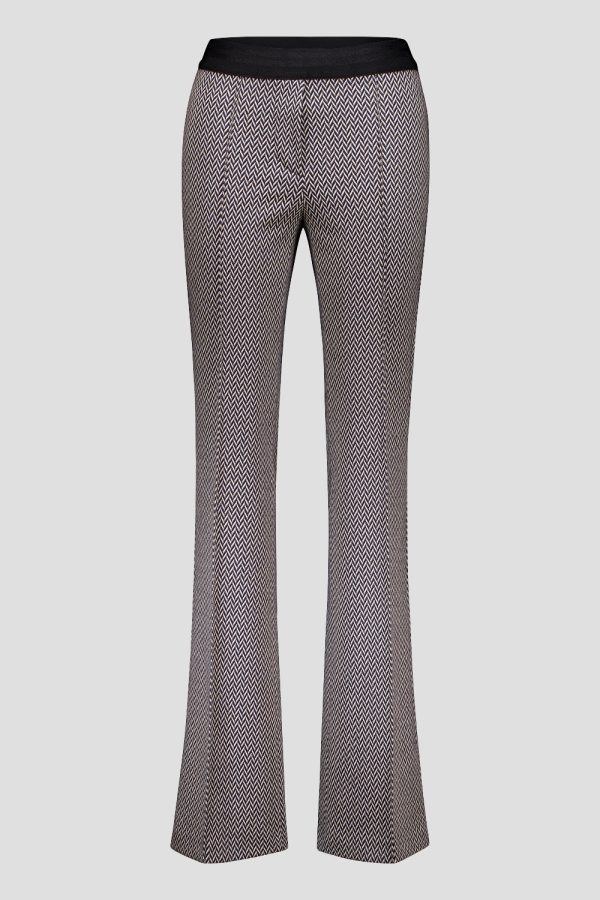 Die ZARIA-622621 aus Herringbone Jersey Jacquard überzeugt mit einer schmalen Passform (Slim Fit) und Bootcut für eine moderne Silhouette. Der dekorative elastische Bund sorgt für hohen Tragekomfort. Paspelierungen an der Vorderhose und Paspeltaschen auf der Rückseite runden das elegante Design ab.