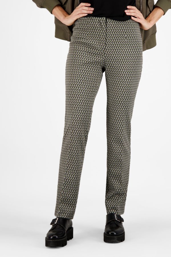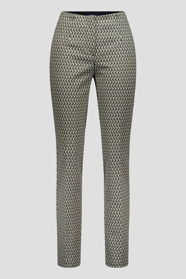 Die ZENE55-622541 aus Herringbone Jersey Jacquard überzeugt mit einer schmalen Passform (Slim Fit) und einem bequemen Bund für optimalen Komfort. Französische Taschen verleihen eine elegante Note, während Abnäher-Details die Passform perfekt optimieren und eine schmeichelhafte Silhouette formen.