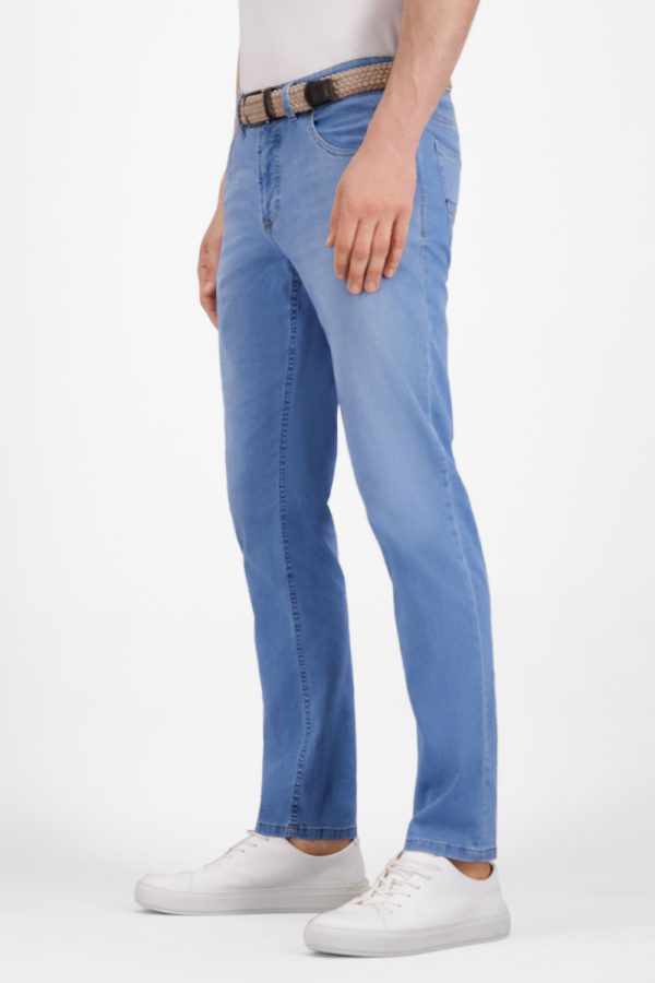 Die BATU-4 aus der Frühjahr/Sommer Kollektion ist eine Modern Fit Herrenhose aus leichtem 7,5 Oz Denim, ideal für sommerlichen Tragekomfort. Dank 8 % T400® bietet sie eine Smart Dynamic Stretch-Performance mit bis zu 35 % Elastizität und über 90 % Rücksprungkraft. Die Kombination aus Elastomultiester-Faser LYCRA® T400® und Elasthan sorgt für eine perfekte Passform. Leichtes Gewicht, eine hochwertige Haptik und aufwendige Treatments verleihen ein kühles Tragegefühl und einen authentischen Denim-Look. Hergestellt mit BCI Baumwolle, die nachhaltigen und fairen Anbau unterstützt.